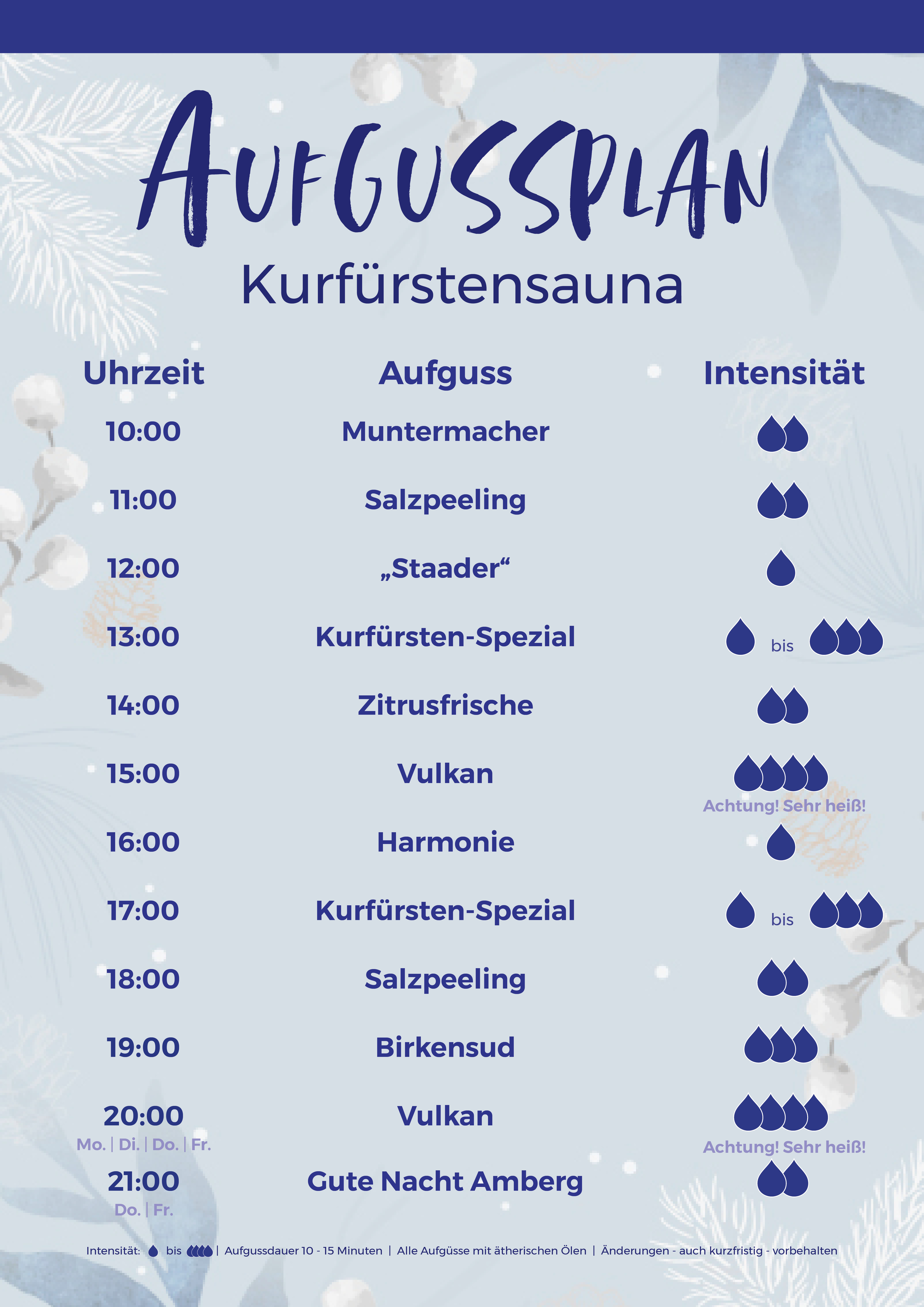 - in der Regel dauert ein Aufguss 8 bis 12 Minuten